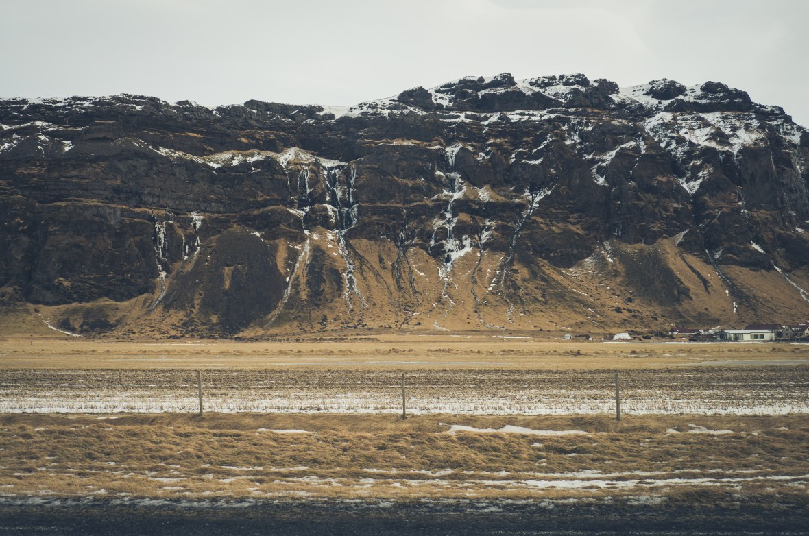 The very next day, we were back on Route 1, making our way, once again, to the warmer environs of Iceland’s southern latitudes. There were a few things we couldn’t fit into the previous day, so we split up the itinerary over two days, sucking up the time cost of making two separate trips to the south coast. Up first was Sólheimajökull, a glacier about two hours away from Reykjavík, popular with tourists and thrill seekers for ice walking and ice climbing excursions. As we drove down Route 1 in the blinding morning sunshine, we squinted our eyes and looked forward to the cozy browns and yellows along the springtime coast.