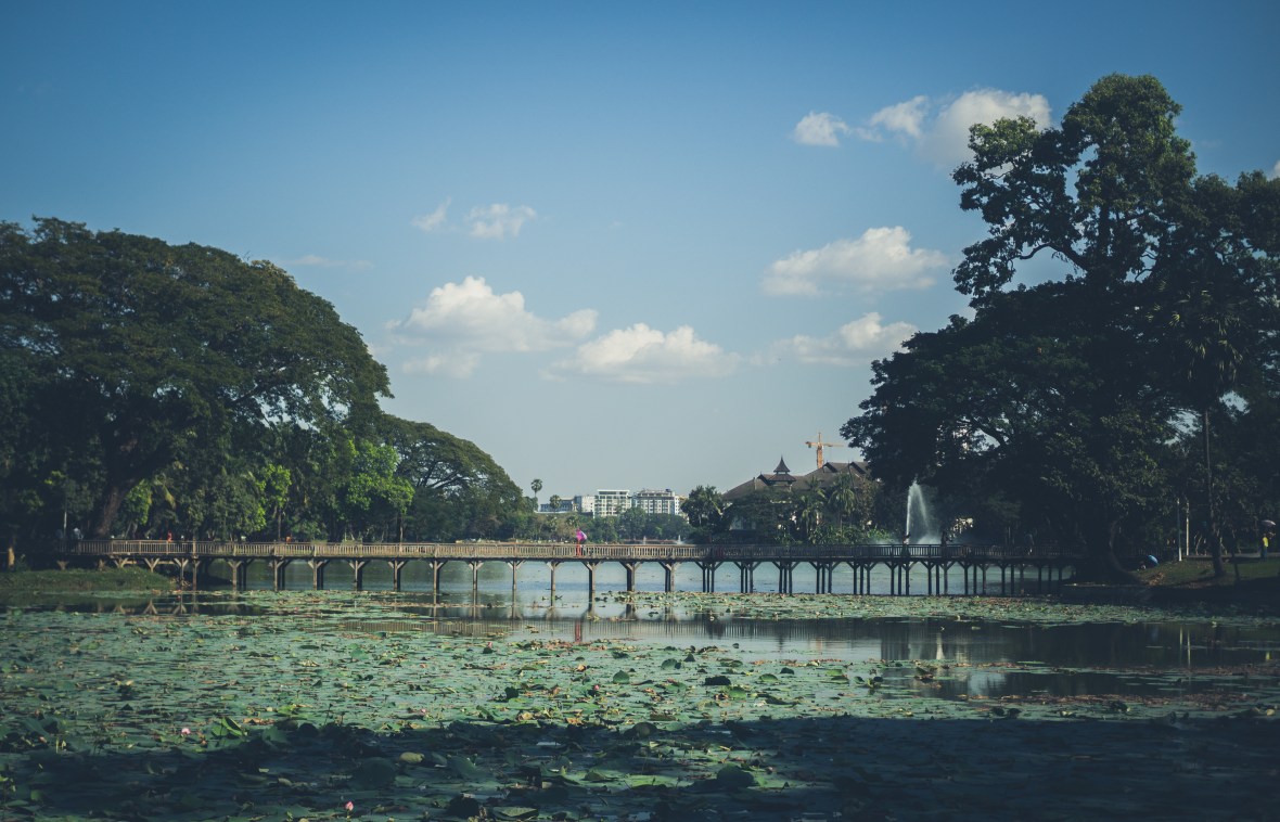 The colonial legacy of the British Empire in Yangon goes beyond the city’s stunning architecture (photos here). Imperial administrators commissioned massive construction works in transforming a fishing village on the banks of the Yangon River into a proper metropolis, laying the foundation for much of the urban infrastructure that still defines the geography of modern-day Yangon. Two such examples are the man-made lakes of Inya and Kandawgi, made by the British in the 1880s to provide a sustainable water source for the inhabitants of the young city. Today, the lakes serve as popular public spaces for Yangon’s citizens, offering miles of waterfront and lush green lawns for picnics and a quick nap in the sun.