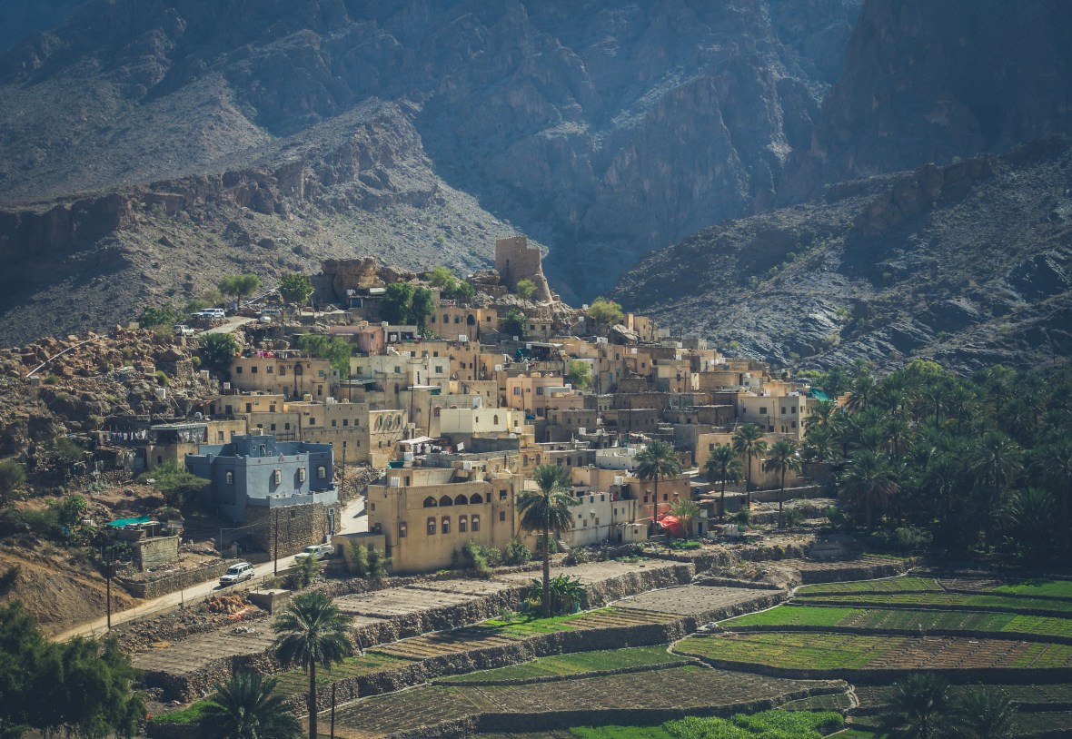 After all of the mountain driving, the village itself was a bit of a letdown for us. It looked beautiful from the road overlooking the terraced fields and the mud brick buildings, but we didn’t get a strong impression of the place walking through its narrow streets and alleyways. We were also in a bit of a hurry as we still had quite a bit of mountain road to get through, and, at our current rate of driving, it could be near dark by the time we emerged from the hills – and we definitely did not want to be on this road past sunset. So after maybe thirty minutes at Bilad Sayt, we went back to our parked car and continued our drive.