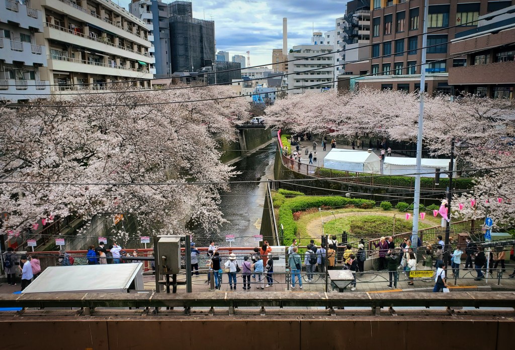 It wasn’t until we swung by the Nakameguro neighbourhood on our very last day, however, that we truly were immersed in the magic of cherry blossom season. All along the Meguro River, masses of cherry trees stretched their branches, thick with blossoms, across the waterway, creating a stunning backdrop to an otherwise fairly mundane urban landscape. The clouds of white and pink blossoms contrasted beautifully with the dark water, the green shrubbery, and the tans and browns of the city buildings. Even as we were pulling into the metro station, I caught a glimpse of the scene below and let out a gasp. It was fitting end to our time in Tokyo – to walk well-trodden paths in the footsteps of generations of cherry blossom admirers, and to do so with close friends; a magical moment enhanced by the fact of having shared it with those you love.