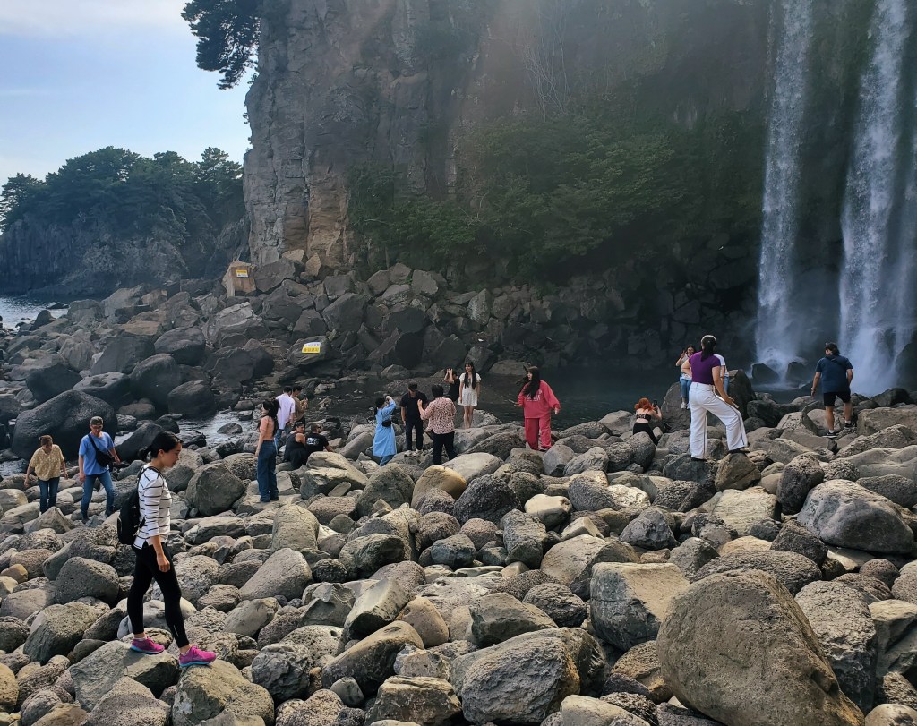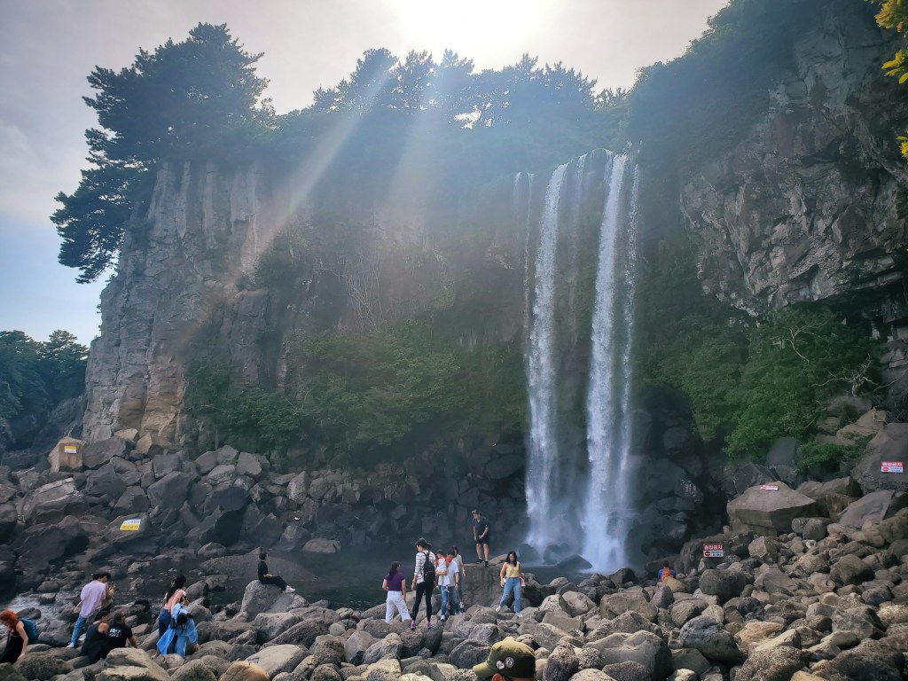 We stayed on the south side of Jeju Island in a place called the Jungmun Tourist Complex – basically a bunch of hotels and resorts located conveniently close to one another. That also placed us pretty close to some of Jeju’s famed waterfalls. The island’s violent geographic past and hilly landscape makes for an interesting array of falls, particularly on its southern coast. We had just about enough time on our first afternoon (the morning was spent recovering from the long travel day the day before) to see two of them.