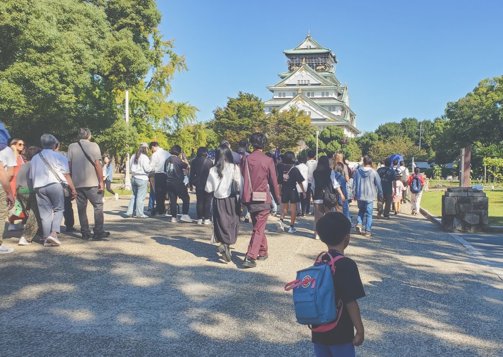 After spending our second day of the boys trip in Kyoto, we were back in Osaka to cap off our holiday. First on our agenda: the very symbol of Osaka itself, Osaka Castle. The actual structure itself has been rebuilt a number of times, most recently in the 1990s when the city government completed a restoration project to create a modern museum interior. Ashley and I didn’t have time to check it out when we were in Osaka eight years ago, so I definitely wanted to swing by with Miles this time around. I did have thoughts about going inside the castle at some point, but the lengthy line at the gate was enough to make me think twice. The castle is nestled inside of a park that’s quite nice to walk around in, and the elevated terraces provide decent views of the surrounding city.