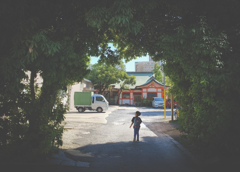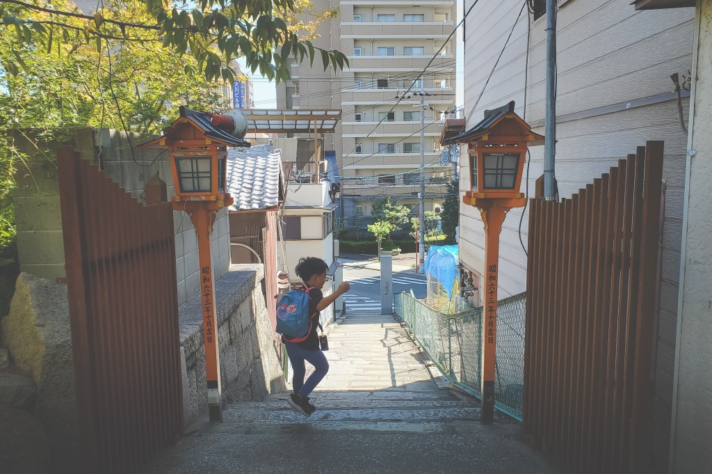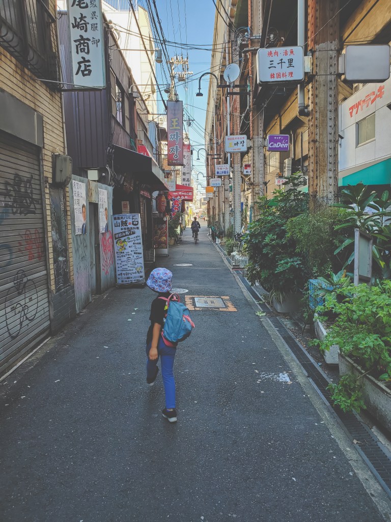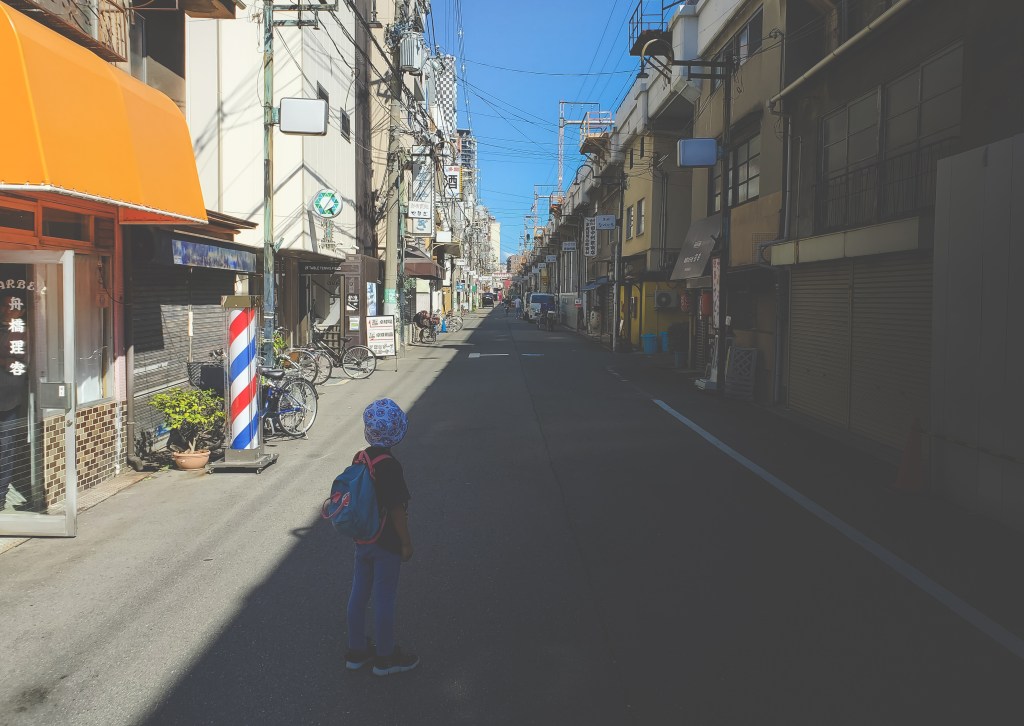 The plan was to spend a couple days in Osaka sandwiched around one full day in Kyoto. I had a few kids’ activities planned for the first day to ease us into the trip, and then a more relaxed (in theory) day of sightseeing on our last day. We stayed in the Kita area of town, a key transport and business hub for the city, but tucked away in one of those quiet neighbourhoods that seem to always be hiding in plain sight in Japan. After settling into our hotel (Umedaholic Hotel – very cozy and comfortable, with great breakfast options and free snacks in the lobby) and getting a good night’s rest, we headed out bright and early the next day to get a jump on our agenda.