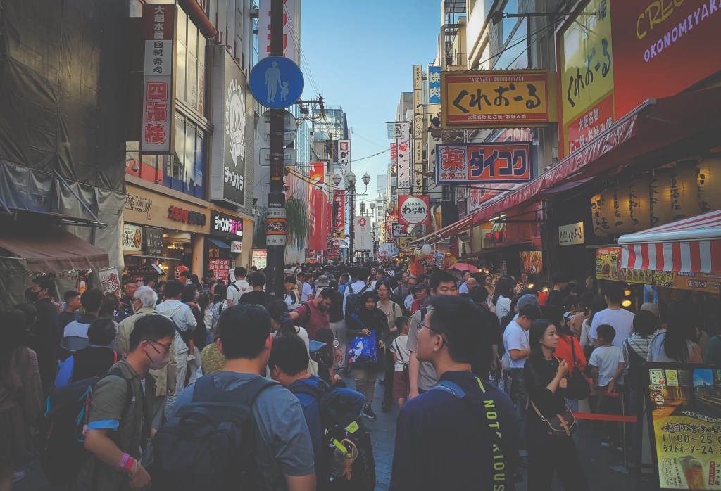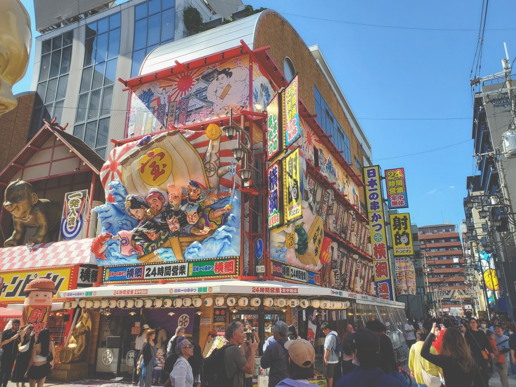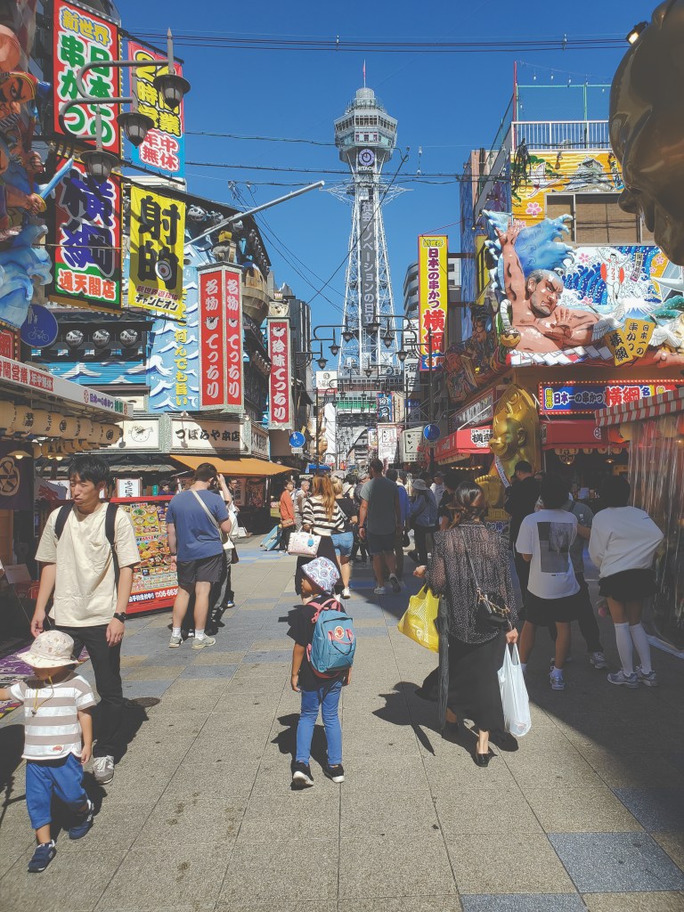 Speaking of big, shiny buildings – there were two other places I wanted to bring Miles to, purely for the aesthetics: Shin Sekai and Dotonbori. These should be no stranger to anybody who has been to Osaka, and probably to the more adventurous or well-traveled they are very old news, but I couldn’t resist popping by and checking these places out. I’d already been to Dotonbori with Ashley and her family when we were last in the area nearly a decade ago, but there’s something about being present in a globally-resonant space that makes me feel like I’m a part of something bigger. It may be that this has something to do with the lingering effects of the Covid lockdowns in Hong Kong not too long ago, when the sense of isolation from the rest of the world grew quite acute, especially in 2022 when it seemed like everywhere but Hong Kong had decided to move on from the pandemic already. Perhaps I’m still feeling that isolation, somewhat, even as one could argue that Hong Kong is showing life again. In any case, I don’t think I visited Shin Sekai and Dotonbori for the views so much as I wanted to be where I thought the rest of the world might be, if that makes sense. Miles was pretty quick to lose interest, and I didn’t really need to stick around for long in either place.