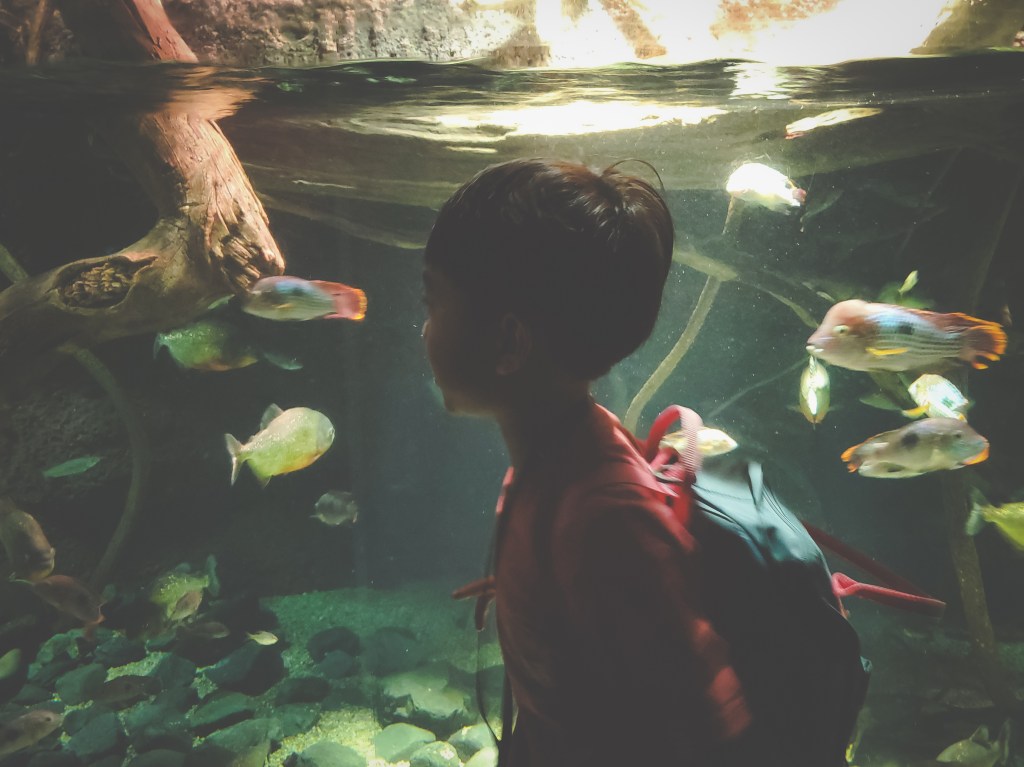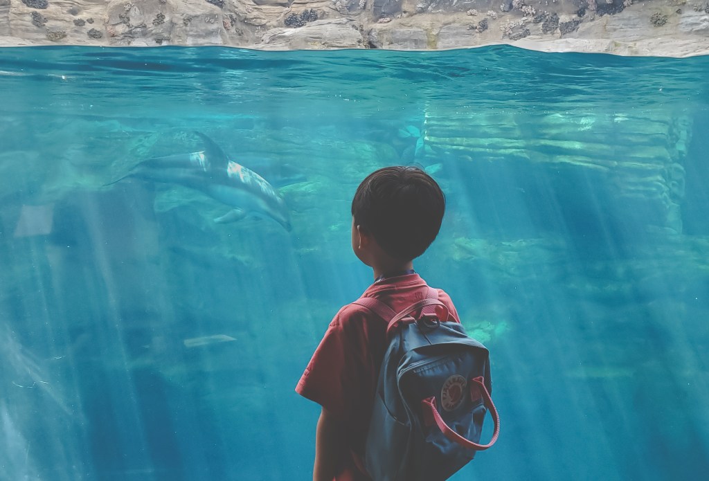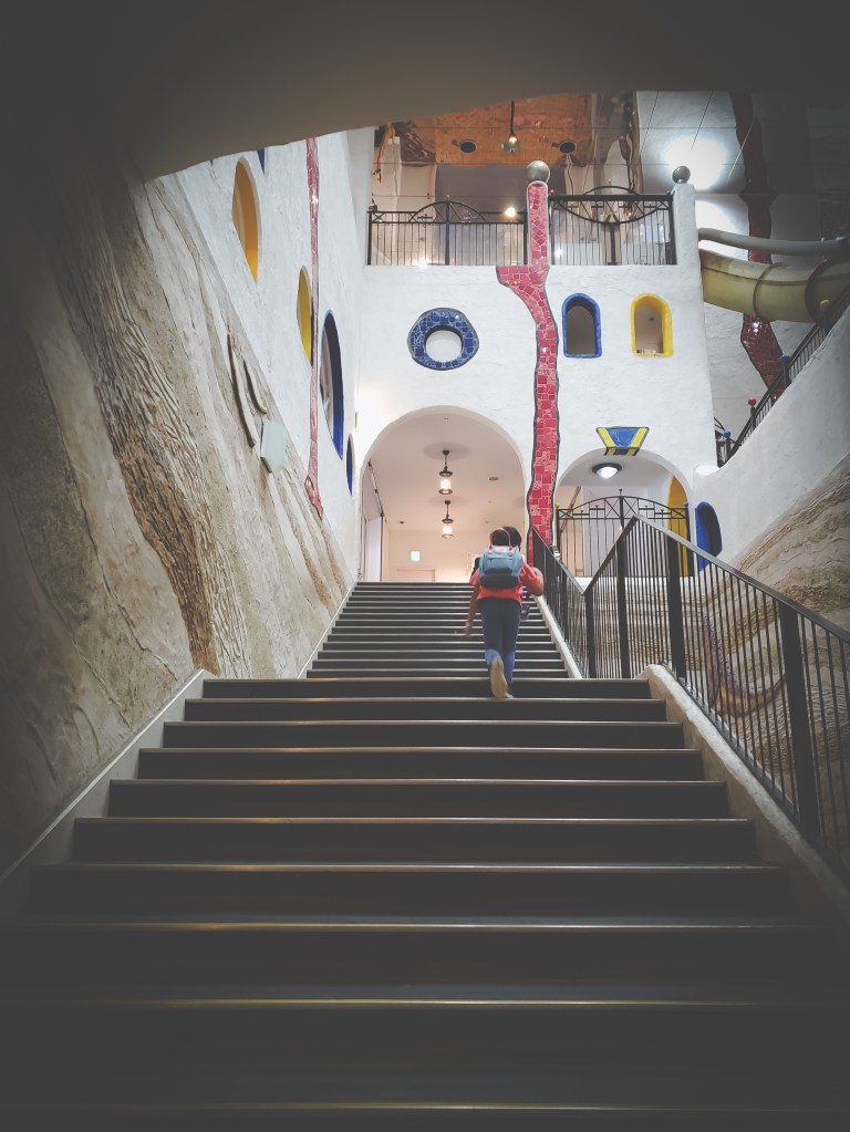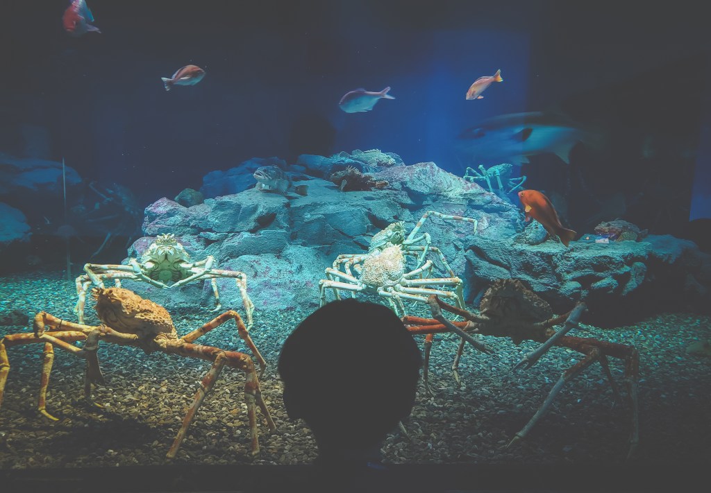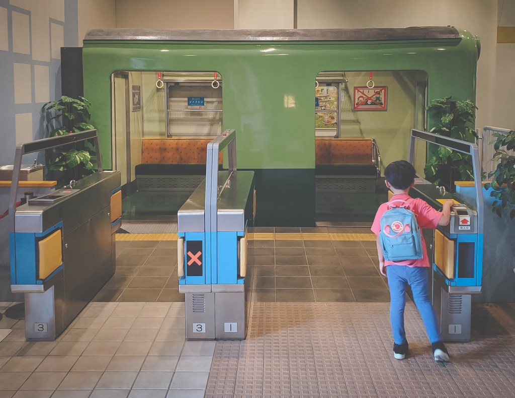 We made a quick stop at 9 Borden Coffee, about halfway between Osakako Station and Kaiyukan, and had an excellent flat white, before heading into the wonderful world of aquatic education. The aquarium is divided into 16 main exhibits that cover a wide swathe of ecosystems, including the Great Barrier Reef, the Californian coastline, the Amazonian rainforest, the Arctic, and the Pacific coastline closer to Osaka’s shores. The massive Pacific Ocean tank is the marquee exhibit, featuring whale sharks, hammerheads, rays, sunfish, and other impressive sea creatures. More interesting for Miles were the various stamp stations spread out around the aquarium. I’d say we spent about 60% of our time there looking at the wildlife and 40% searching in hidden corners and hallways for the next stamp to add to his little stamp book. We were basically done with Kaiyukan after about an hour, which worked out since we needed some time to head back into the city for our next destination: the Kids Plaza Osaka.