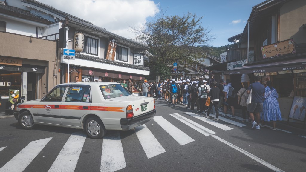 Next up, the 10,000 torii gates of Fushimi Inari Taisha, the head shrine of the Japanese deity of foxes, among other things. This is another very popular stop on the Kyoto circuit, and the crowds here were perhaps even more stifling than at Kiyomizudera. Most were only there to get a first glance at the gates though, and after about 10 minutes of walking up the hill, underneath red gates donated by thousands of businesses over the last few centuries, we found ourselves basically on our own. Miles was keen to follow the path, asking questions about the different gates and shrines marking out our route, and we definitely went a lot further into the hills compared to the last time I was here with Ashley. I was quite impressed by the amount of energy he had that afternoon, though by the time we made our way back to the entrance I could tell he was feeling a bit fatigued. From there we headed back north to walk around the Gion district for a bit. I thought Miles would get a kick out of seeing some of the older neighbourhood scenes of Kyoto, but by that point he was pretty done with everything. We did a quick loop and then grabbed a pretty excellent matcha soft serve ice cream to enjoy while we walked back to the station to catch the next train back to Osaka.